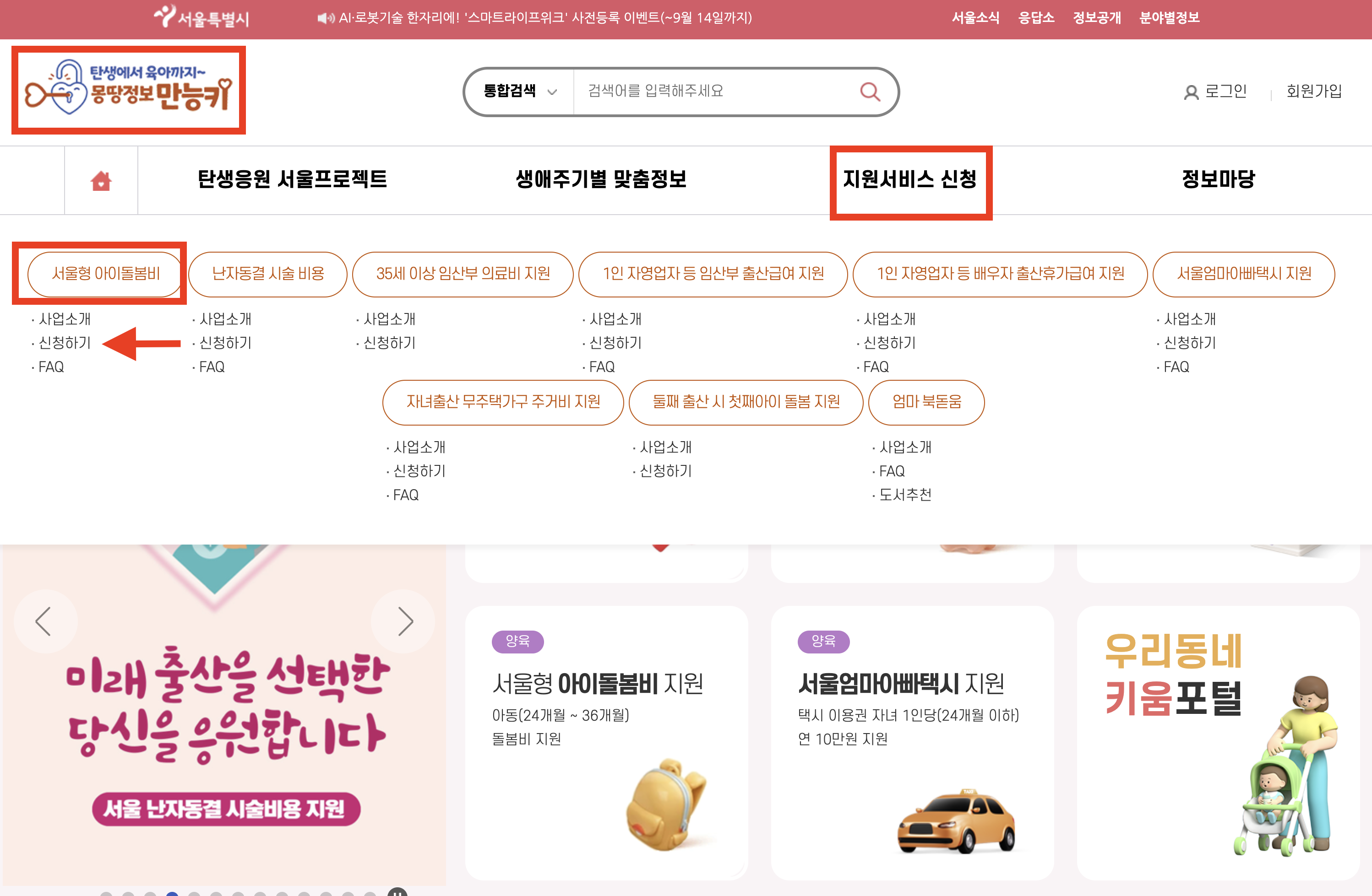 * 신청방법: 서울시 복지포털(몽땅정보만능키) 또는 주민센터 방문