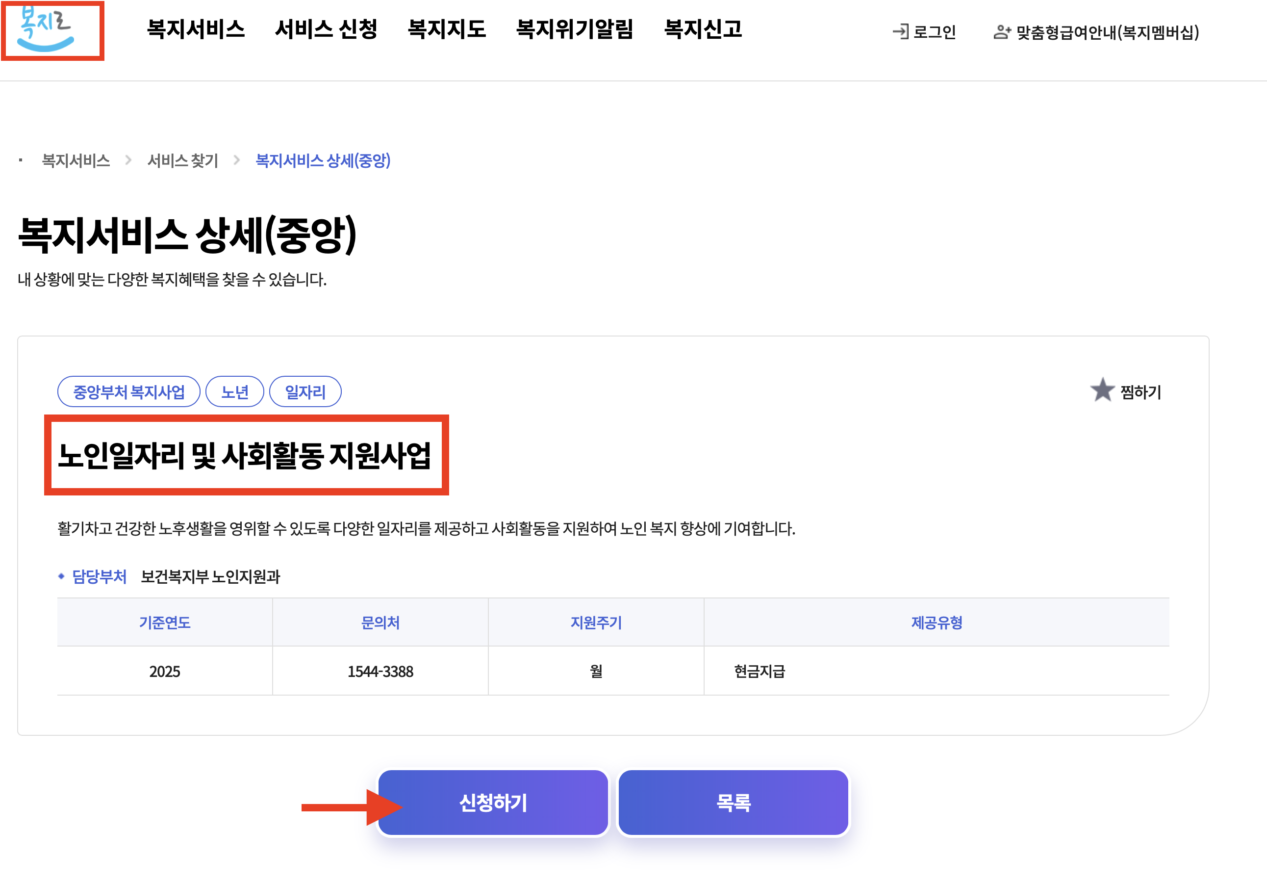 – ‘근로·사회활동 지원사업’ 메뉴에서 신청 가능