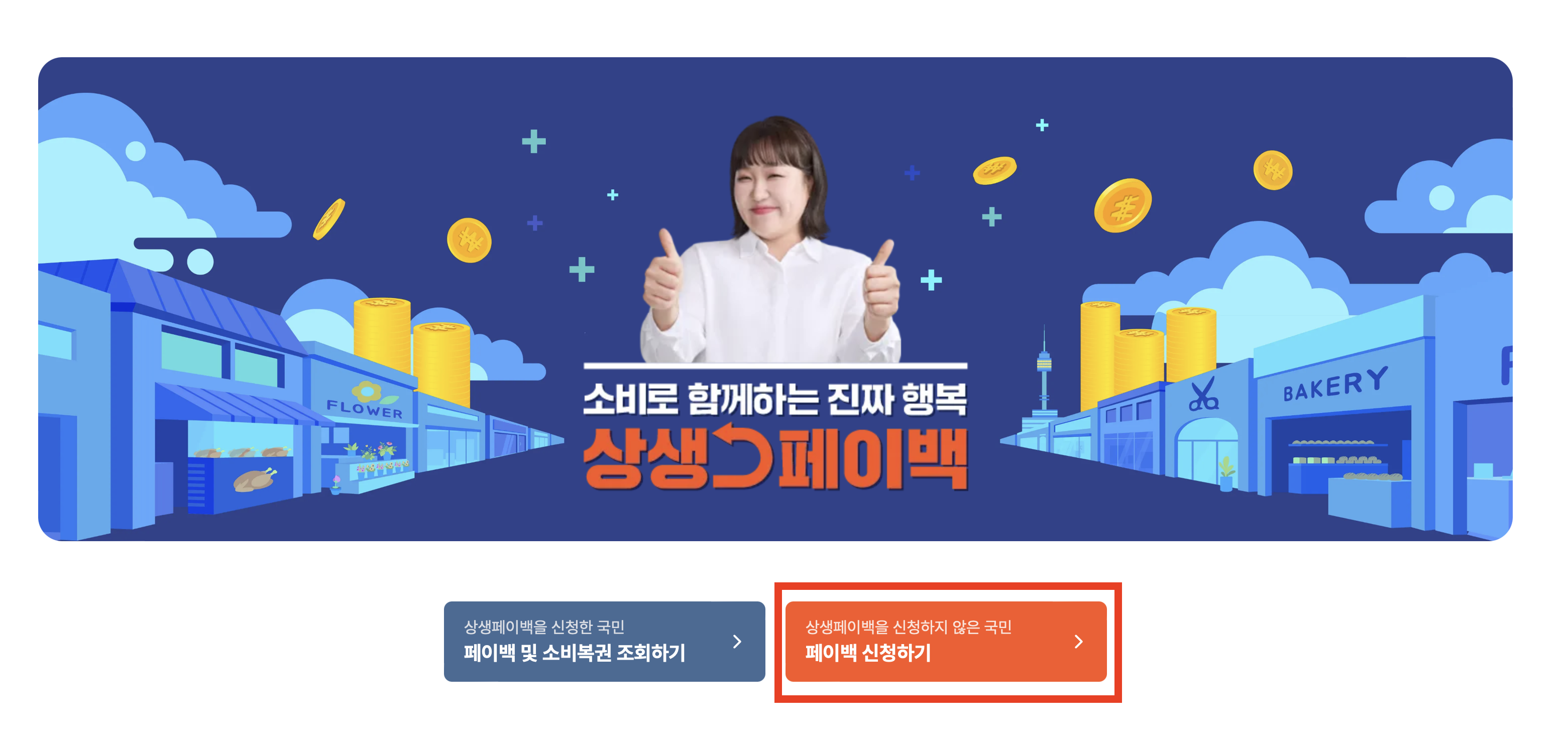 상생페이백은 상생페이백 누리집(상생페이백.kr)을 통해 신청합니다. 한 번만 신청하면 남은 기간의 소비 실적은 자동 반영됩니다.