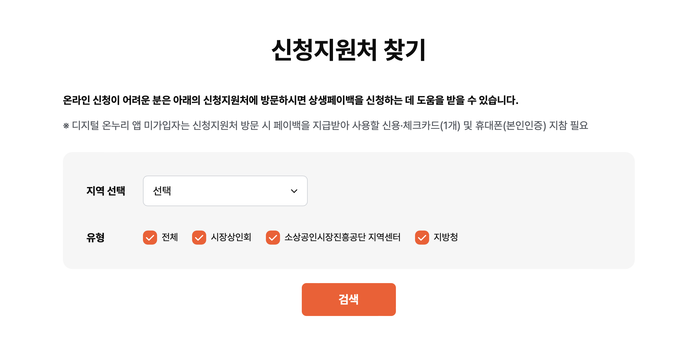 온라인 신청이 어려운 이용자도 현장에서 도움을 받을수 있으며 상생페이백 홈페이지에서 신청 지원처를 찾을수 있습니다.